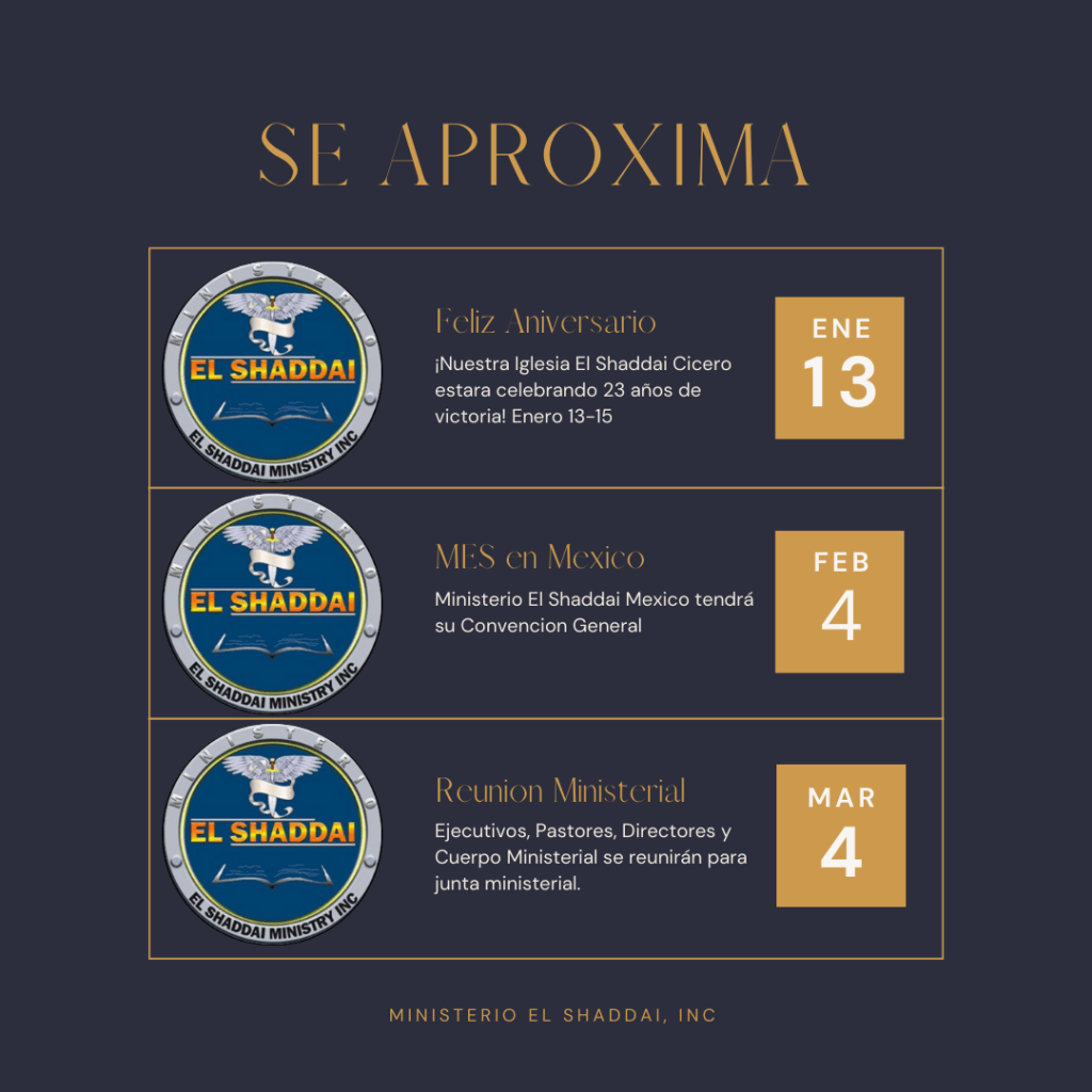 Bienvenidos a la pagina oficial de Ministerio El Shaddai, Inc. Visita y Sigue nuestras redes sociales.